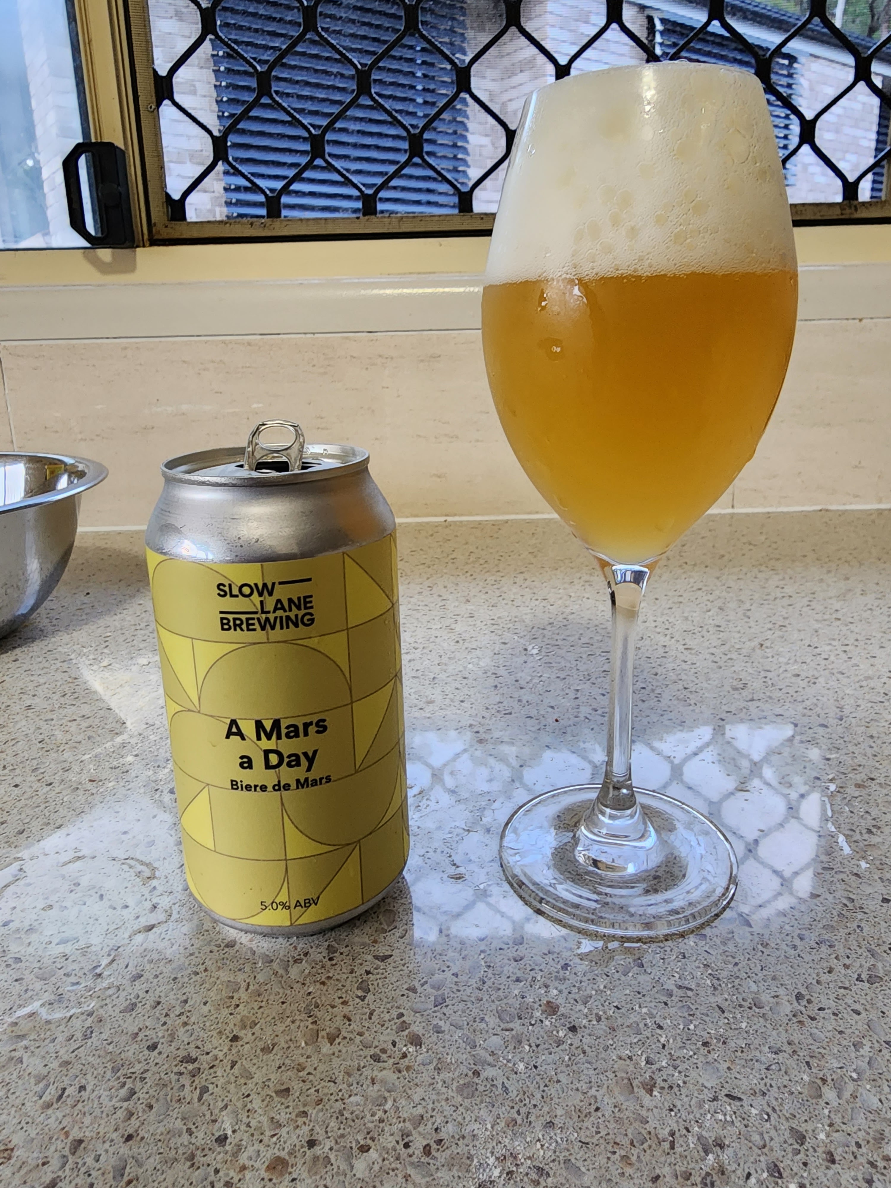 A Mars a Day, a 5.0% Biere de Mars from Slow Lane Brewing. Source: Slow Lane Brewing monthly beer box.